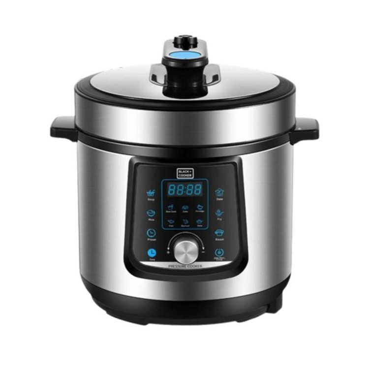از نظر طراحی ظاهری، پلوپز برقی بلک کوکر مدل bc_pc307 دارای بدنهای مقاوم از جنس استیل ضد زنگ و پلاستیک با کیفیت بالا است که علاوه بر دوام، جلوهای شیک و مدرن به آشپزخانه شما میبخشد. رنگ غالب دستگاه ترکیبی از نقرهای براق و مشکی مات است که با اکثر دکوراسیونهای آشپزخانه هماهنگ میشود. صفحه نمایش دیجیتال بزرگ و دکمههای لمسی با طراحی ارگونومیک، کنترل دستگاه را بسیار ساده کردهاند. درب دستگاه به صورت شفاف طراحی شده تا بتوانید روند پخت را به راحتی مشاهده کنید. همچنین دستههای جانبی محکم و طراحی جمعوجور، امکان حمل و جابجایی آسان را فراهم میآورد. وزن مناسب دستگاه و اندازه استاندارد آن به گونهای است که فضای کمی را اشغال میکند و نگهداری آن آسان است.